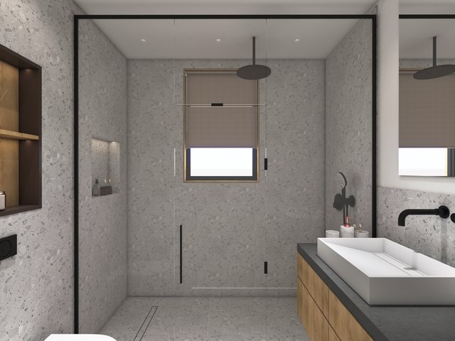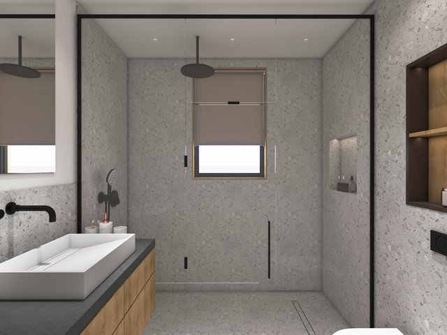The building is constructed with a strong emphasis on top-level energy efficiency and contemporary comfort: exterior PVC joinery with triple glazing and aluminum electric shutters for added convenience and security. The upper floor features a Demit façade with 12 cm of insulation, while the ground floor has 8 cm of insulation additionally refined with 2 cm of natural Travertino Classico stone, giving the property a touch of refined Mediterranean elegance. Heating and cooling are provided by Mitsubishi air conditioning units, while additional comfort during the colder months is ensured by electric underfloor heating in all rooms, controlled via modern Wi-Fi thermostats. The final floor finishes in ceramic tiles from the renowned manufacturer Marca Corona complete the impression of luxury and lasting quality, ideal both for living and as a tourism or investment opportunity.